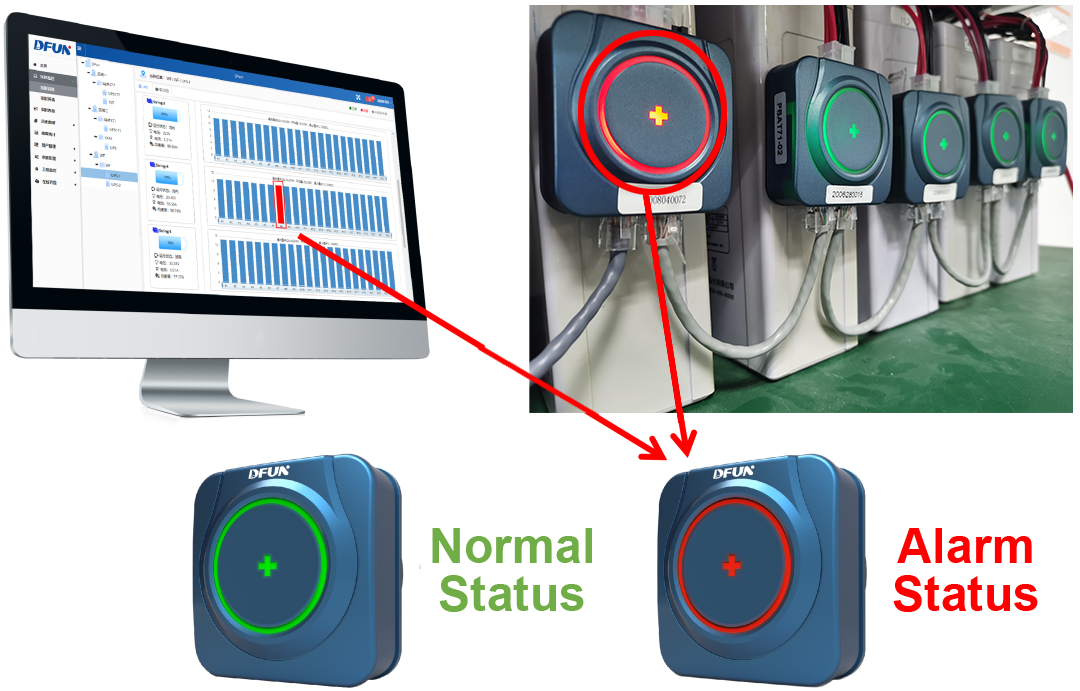 Он может контролировать состояние уровня жидкости в аккумуляторе.Когда уровень электролита батареи ниже нормального диапазона, мастер может отправить раннее предупреждение, если уровень жидкости слишком низкий.